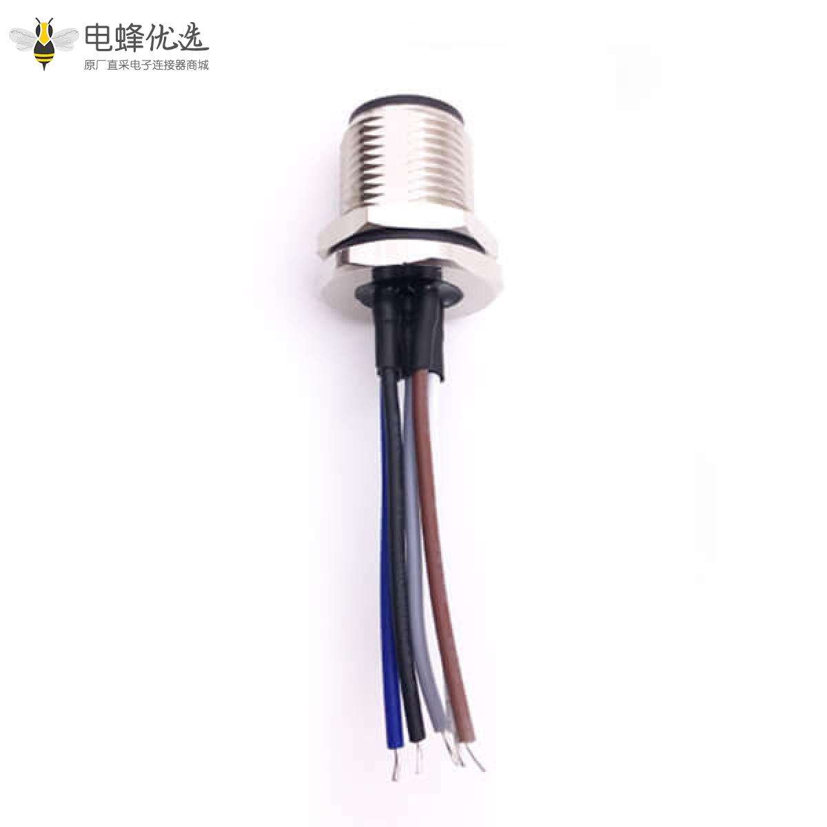 M12,板端插座,A Code,5芯,直式,公头板端,焊线,前锁板;