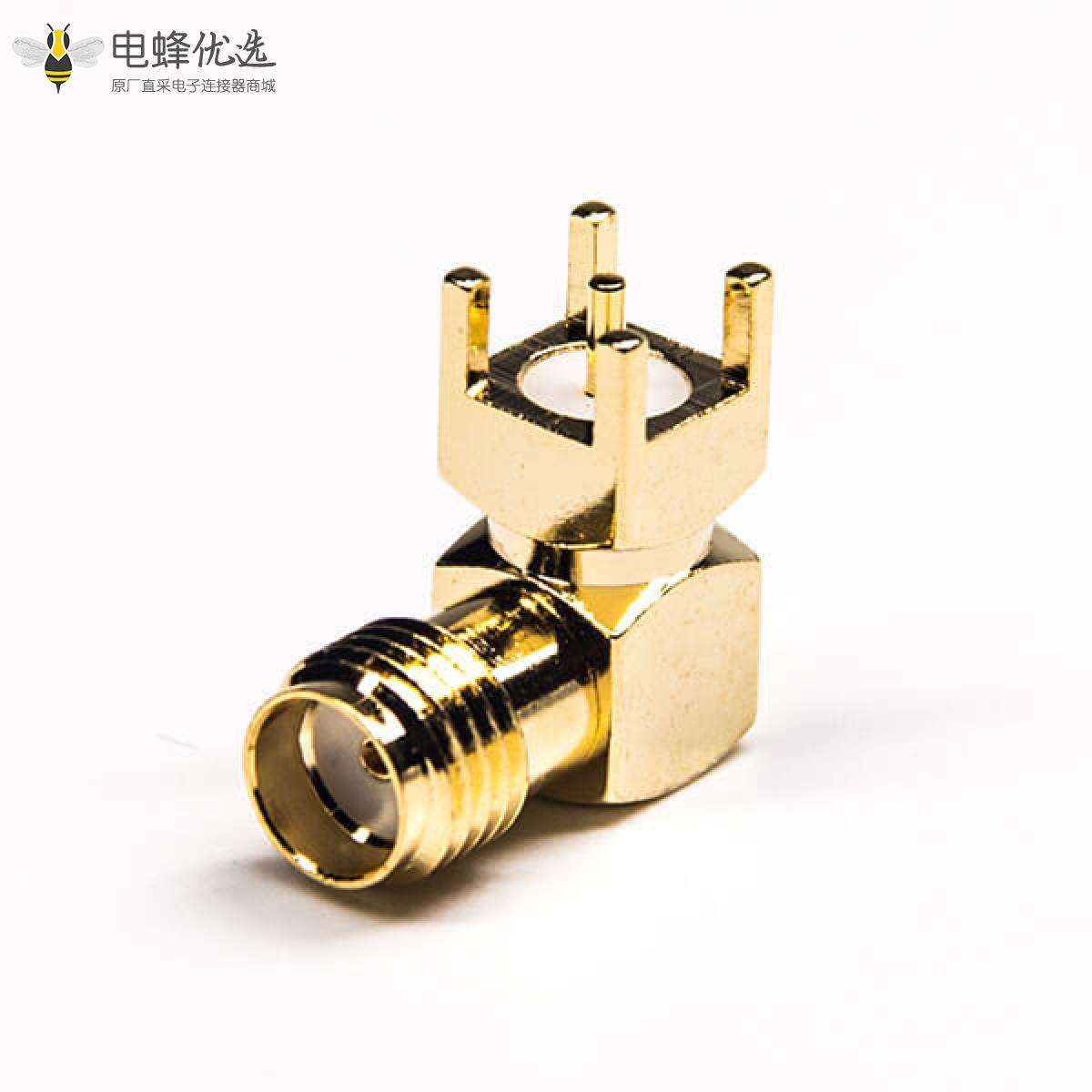 SMA连接器,母头,弯式,穿孔式,插PCB板,50欧姆,镀金;
