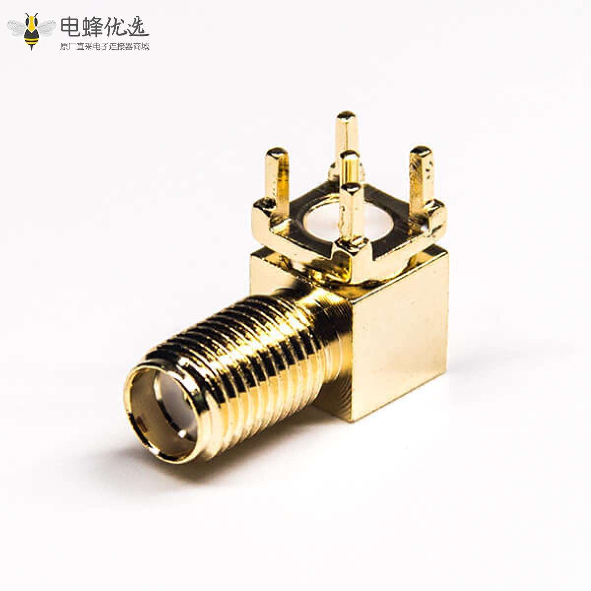 SMA连接器,母头,弯式,插孔,PCB板,50欧姆,镀金;