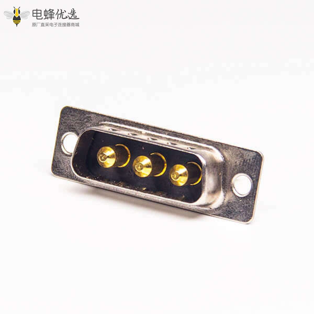 - 混合型D-sub,3W3,直式,大电流,180度,焊线式,接线,光孔铆锁,公头,镀镍,车针 ;