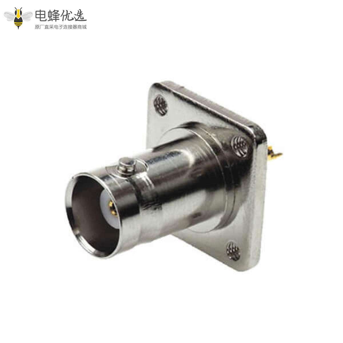 - BNC连接器, 直式, 母头, 180度, 接线, 焊接式, 4孔法兰;