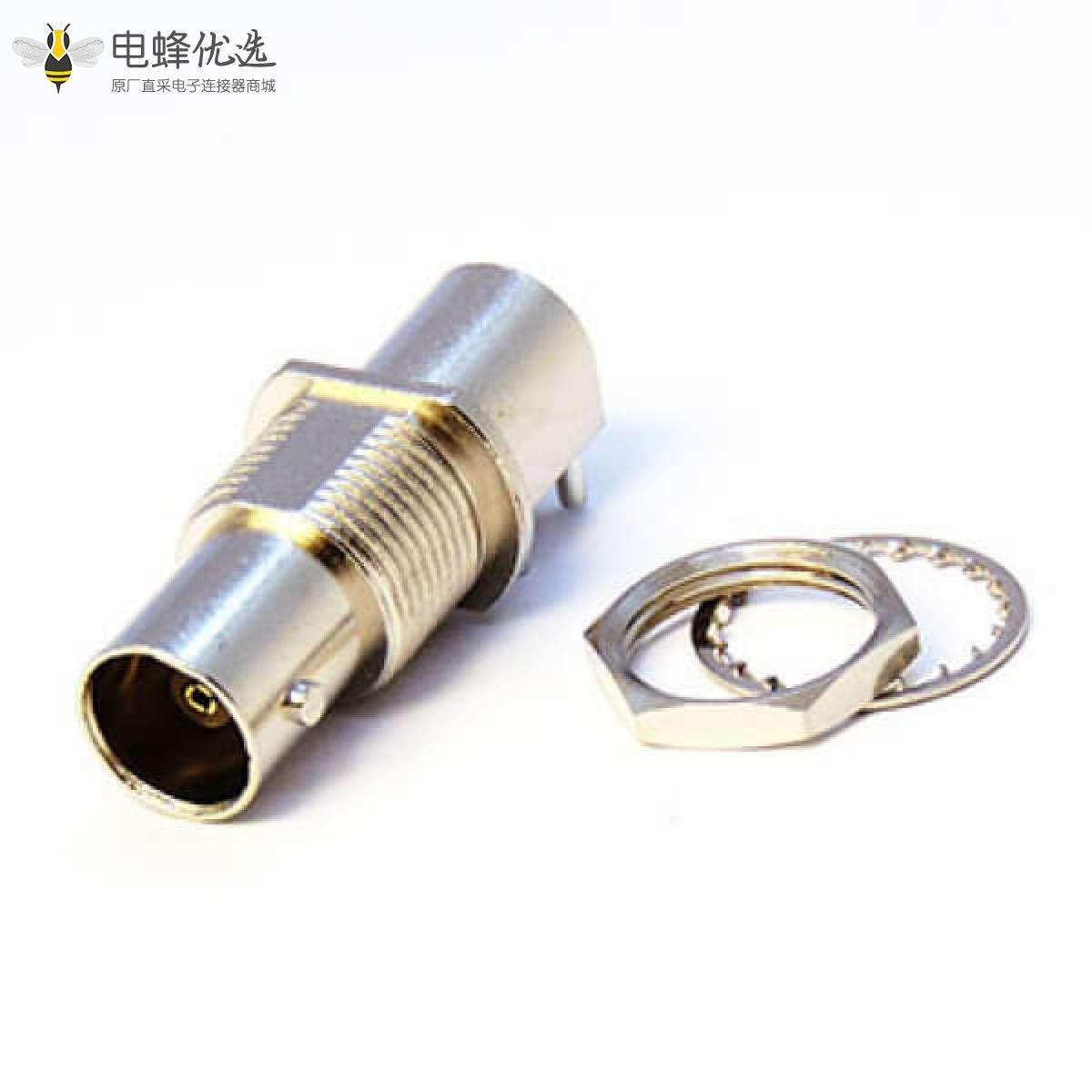 - BNC连接器, 母头, 弯式, 接PCB板, 插孔, 75欧姆, 镀镍;