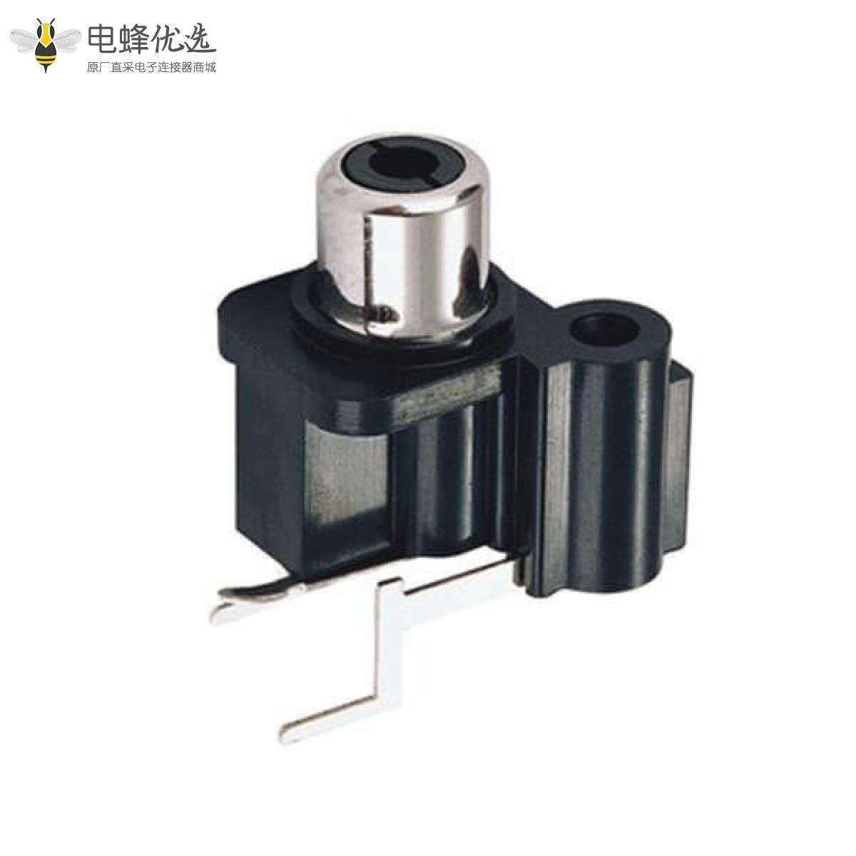 RCA 母弯头90度插板75ohm镀镍黑色塑胶音频接头
