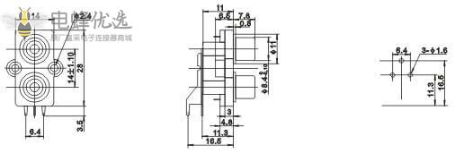 RCA 弯头90度插板莲花插座音频型号输入插座