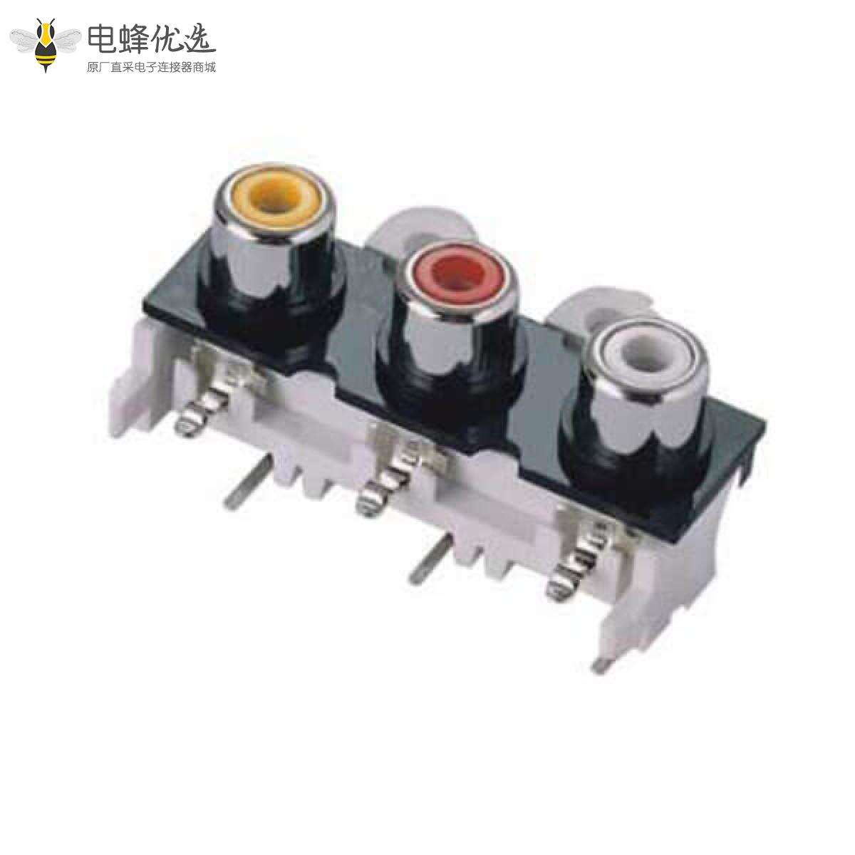 焊板RCA座子3口3pin弯式RCA音频母座