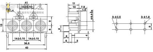 3孔RCA座子75欧姆镀镍直式插板