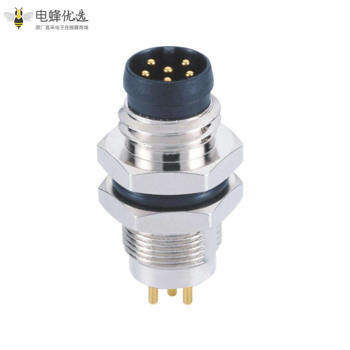 - M8, A编码, 6芯,板端插座, 公, 直头, 接PCB板, 后锁板;