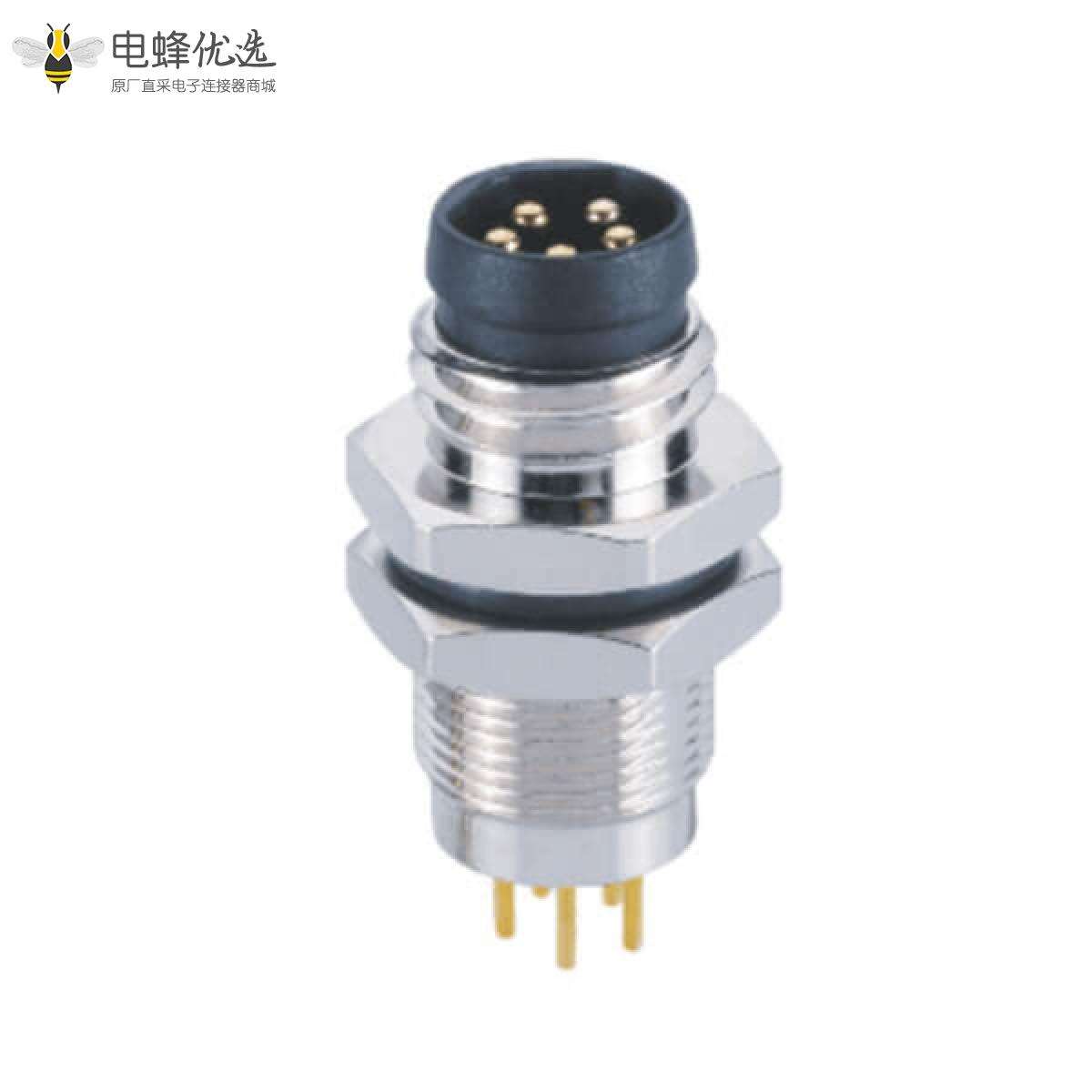 - M8, B编码, 5芯,板端插座, 公, 直头, 接PCB板, 后锁板;