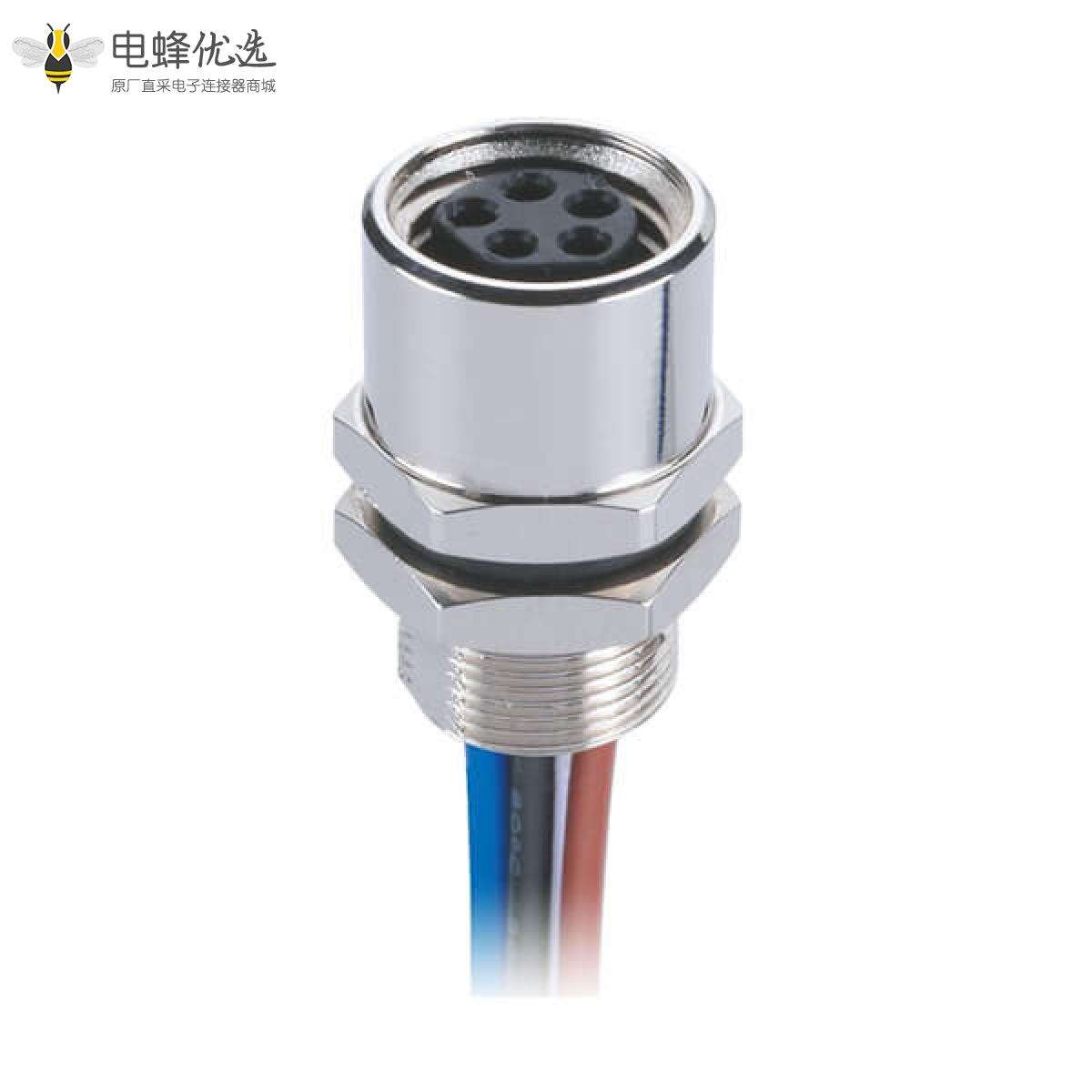 M8, B编码, 5芯,板端插座, 母, 直头, 线材, 焊接式, 后锁板;
