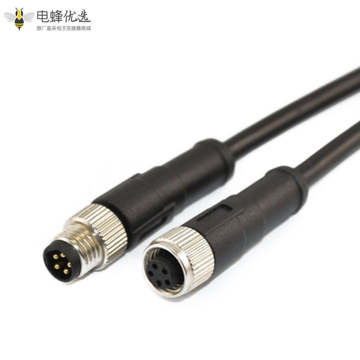 M8, B编码, 5芯,线束, 双边线, 公转母, 接线, 焊接, 不带屏蔽;