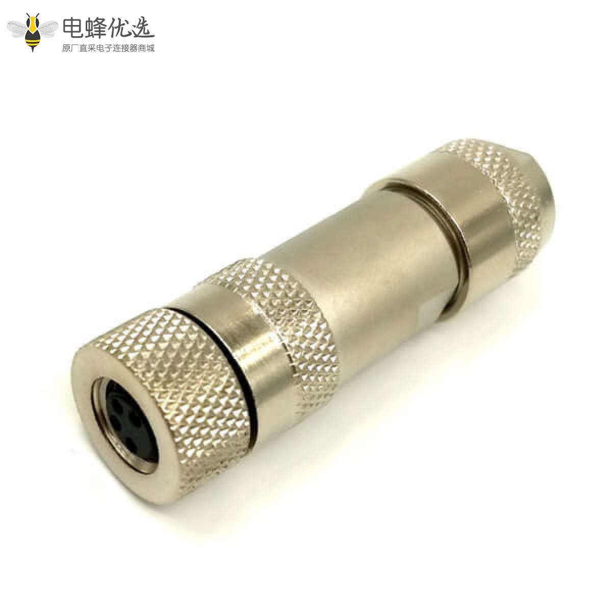 - M8, A编码, 4芯,组装接头, 母, 直头, 接线, 螺丝锁线, 不带屏蔽;