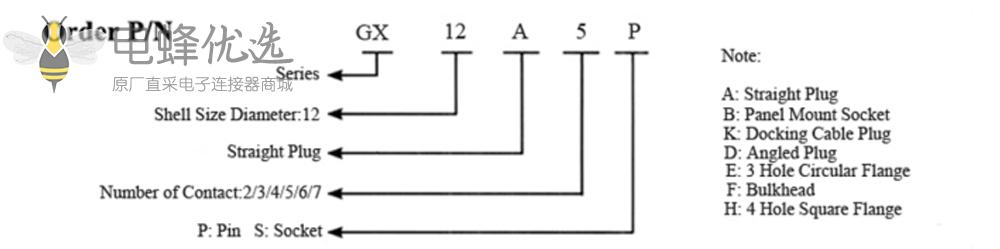 - GX12,线束,4芯,双边线,公转母,直式,接线;