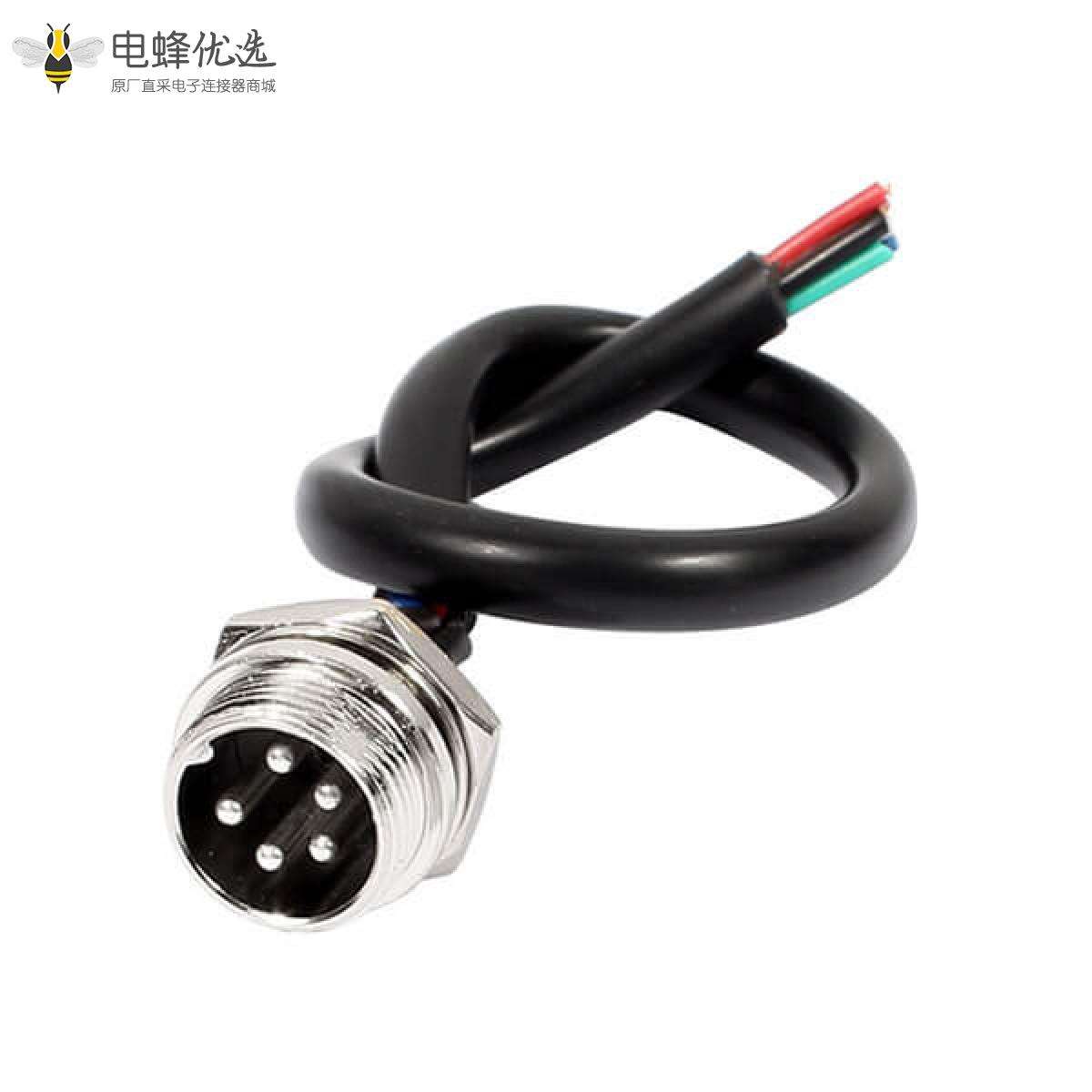 - GX16,常规款,线束,5芯,单边线,公,直式,接线;