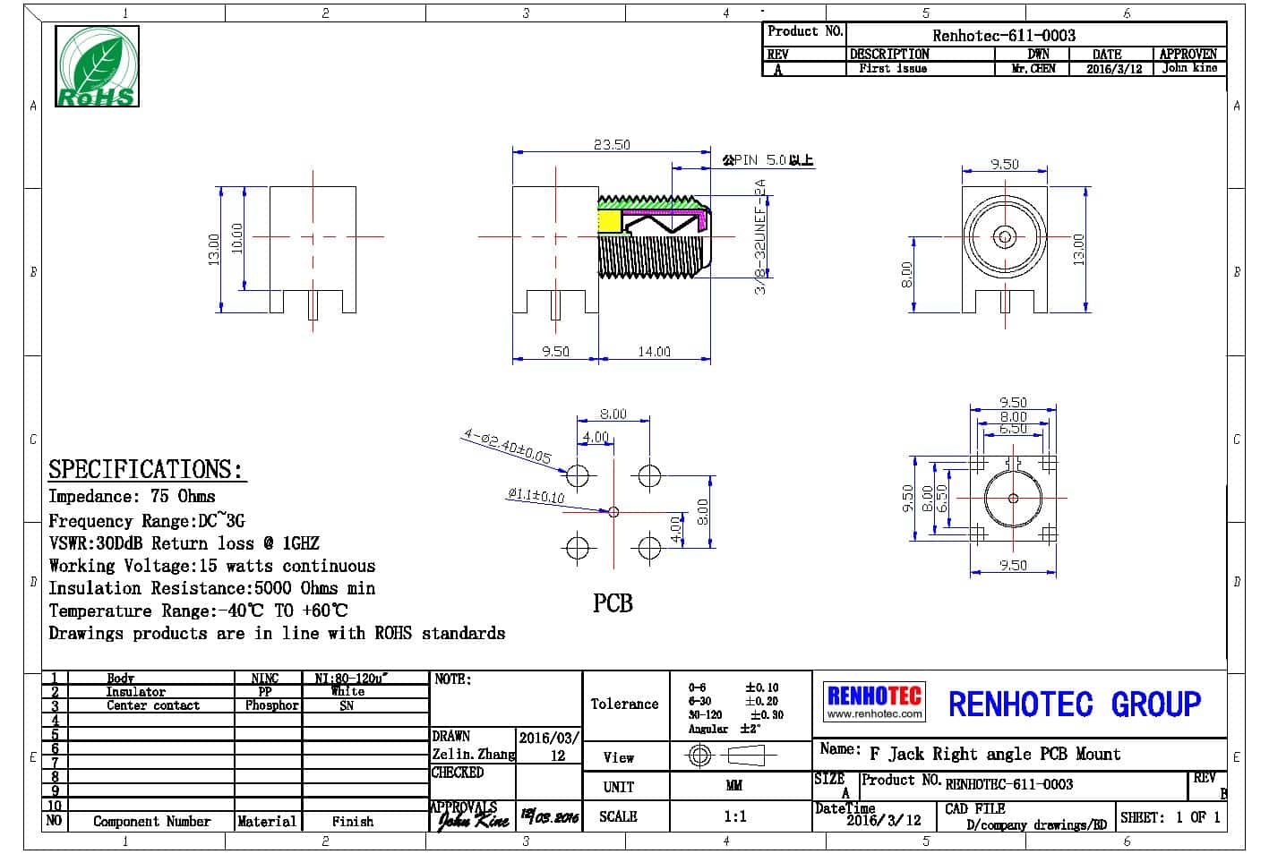- f连接器,pcb板,母头,75欧,穿墙,弯式;