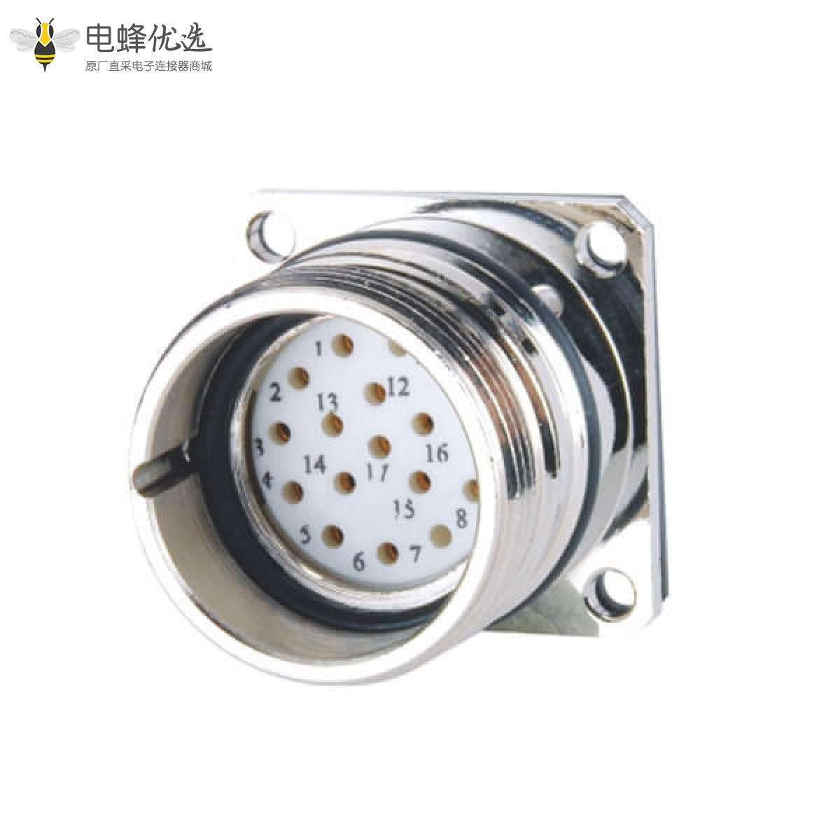 M23, 板端座子, 17芯, 母, 直, 接面板, 4孔法兰;