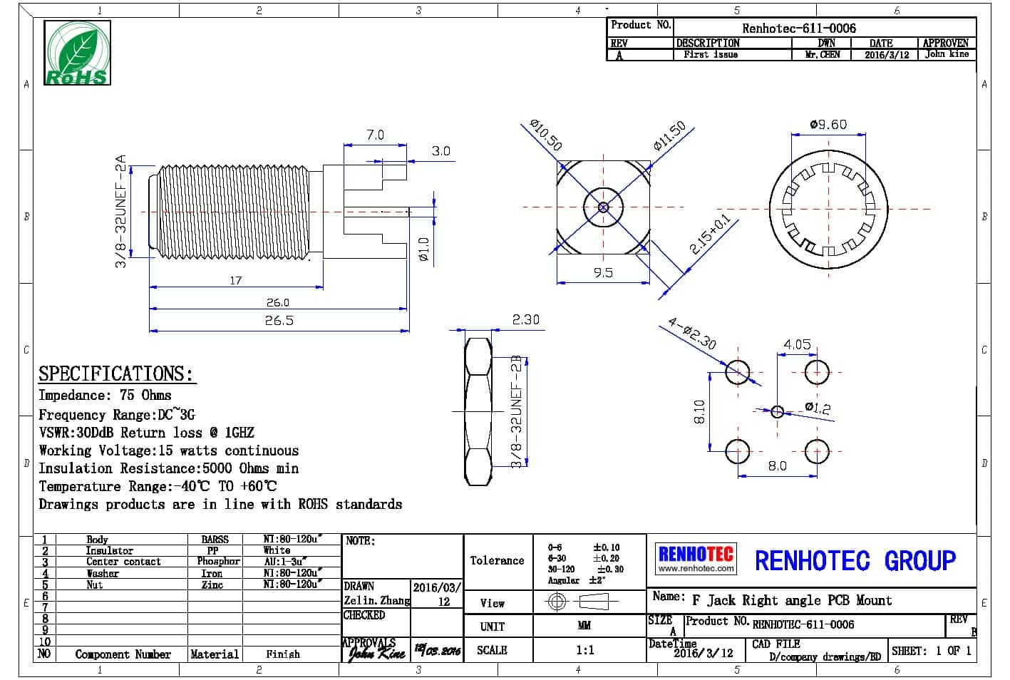 - f连接器,pcb板,母头,75欧,穿墙,弯式;