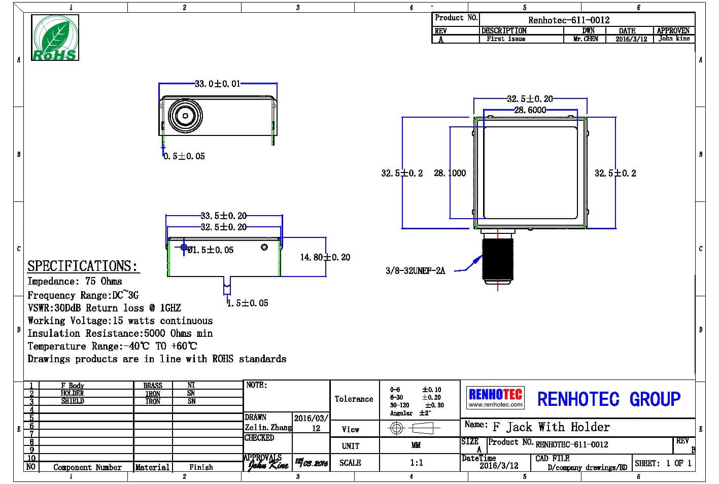 - 阻抗:75 ohm