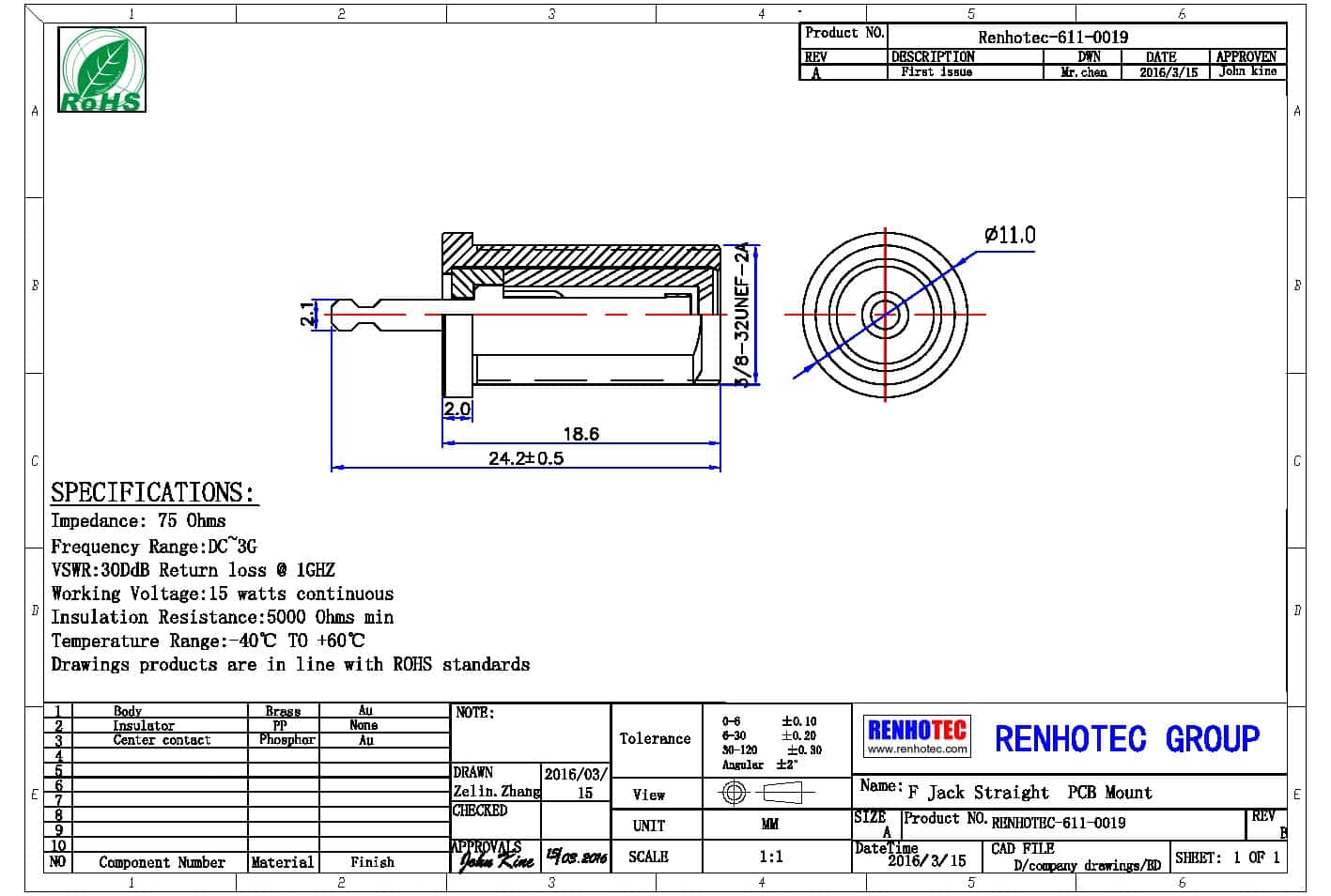 - 中心接触电阻: ≦ 10 mΩ (Milliohms max.)