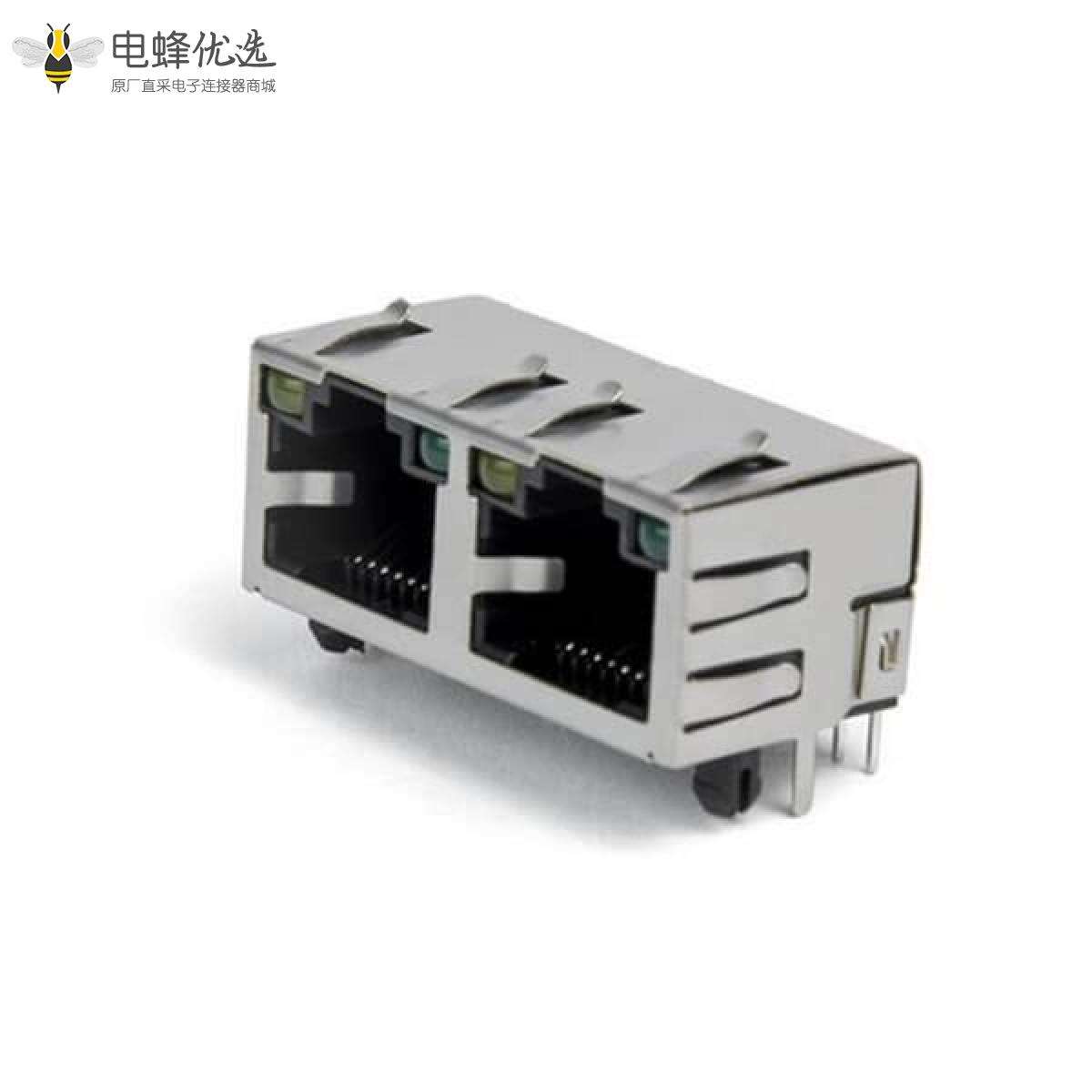 双口RJ45插座1X2连接器屏蔽带灯带弹片