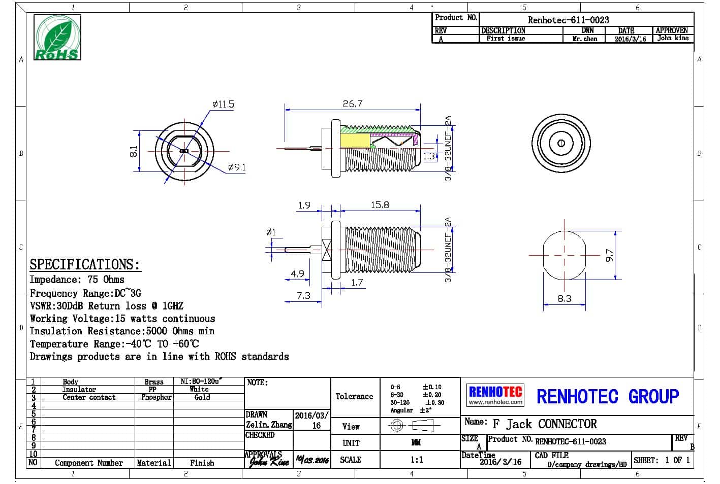 - 中心接触电阻: ≦ 10 mΩ (Milliohms max.)