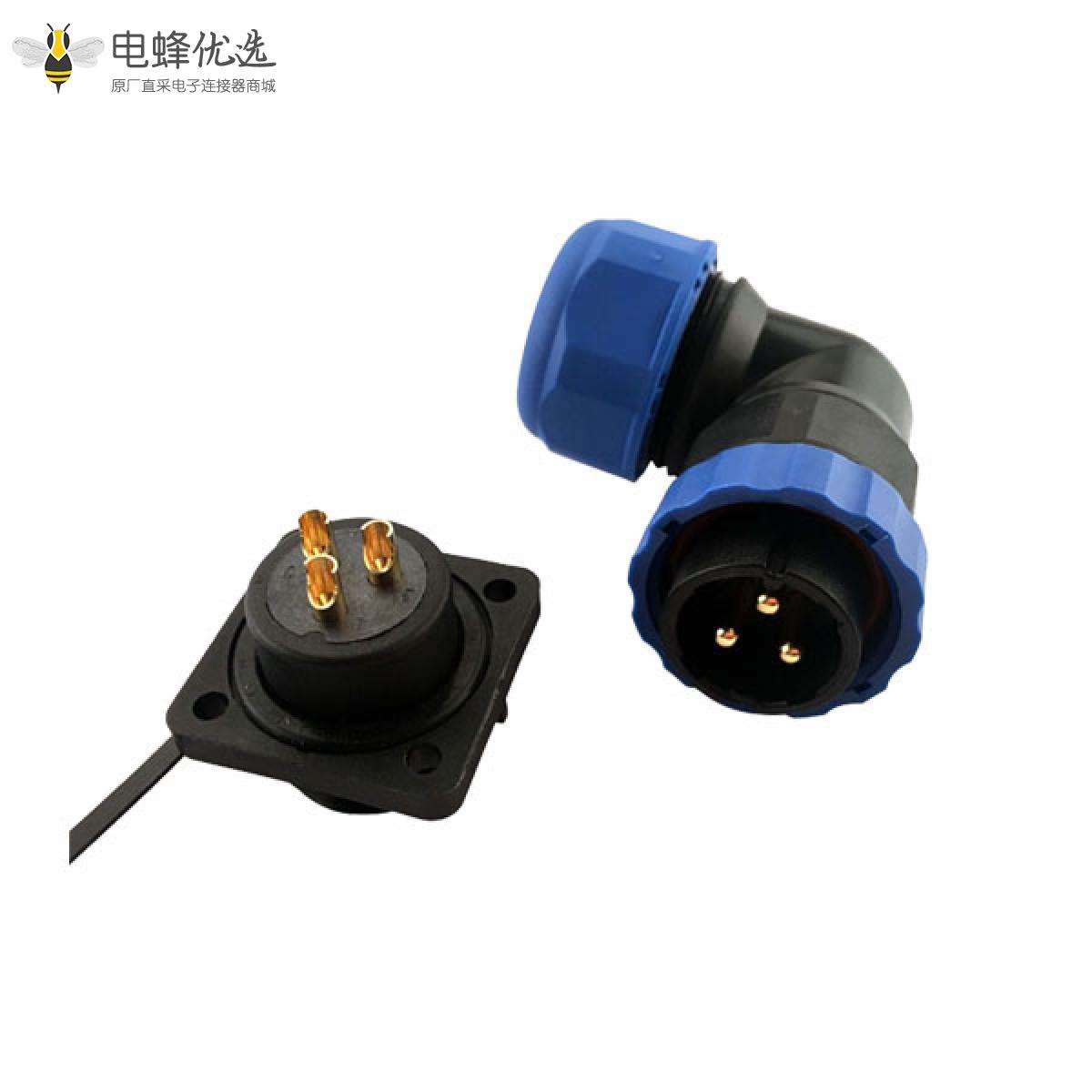 SP21系列,弯角,常规款,4孔法兰插座和弯式插头,焊接中心针,10芯;