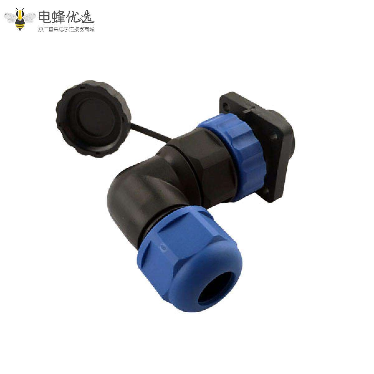 SP21系列,弯角,常规款,4孔法兰插座和弯式插头,焊接中心针,12芯;