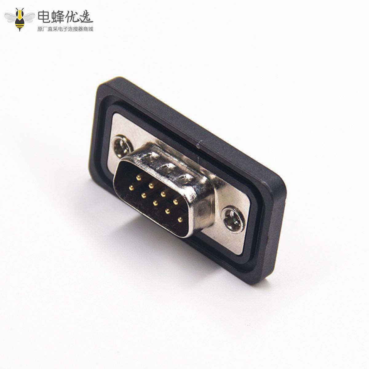 - 防水D-sub,插头,9针,2排,单端口,垂直型,车针,镀金,垂直PCB安装,后铆螺母,IP67,不带滤波;