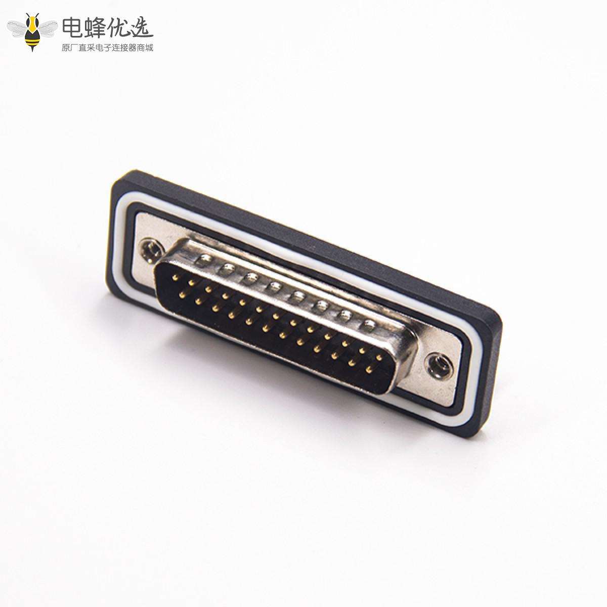 - 防水D-sub,插头,25针,2排,单端口,直角,车针,镀金,PCB安装,后铆螺母,IP67,不带滤波;
