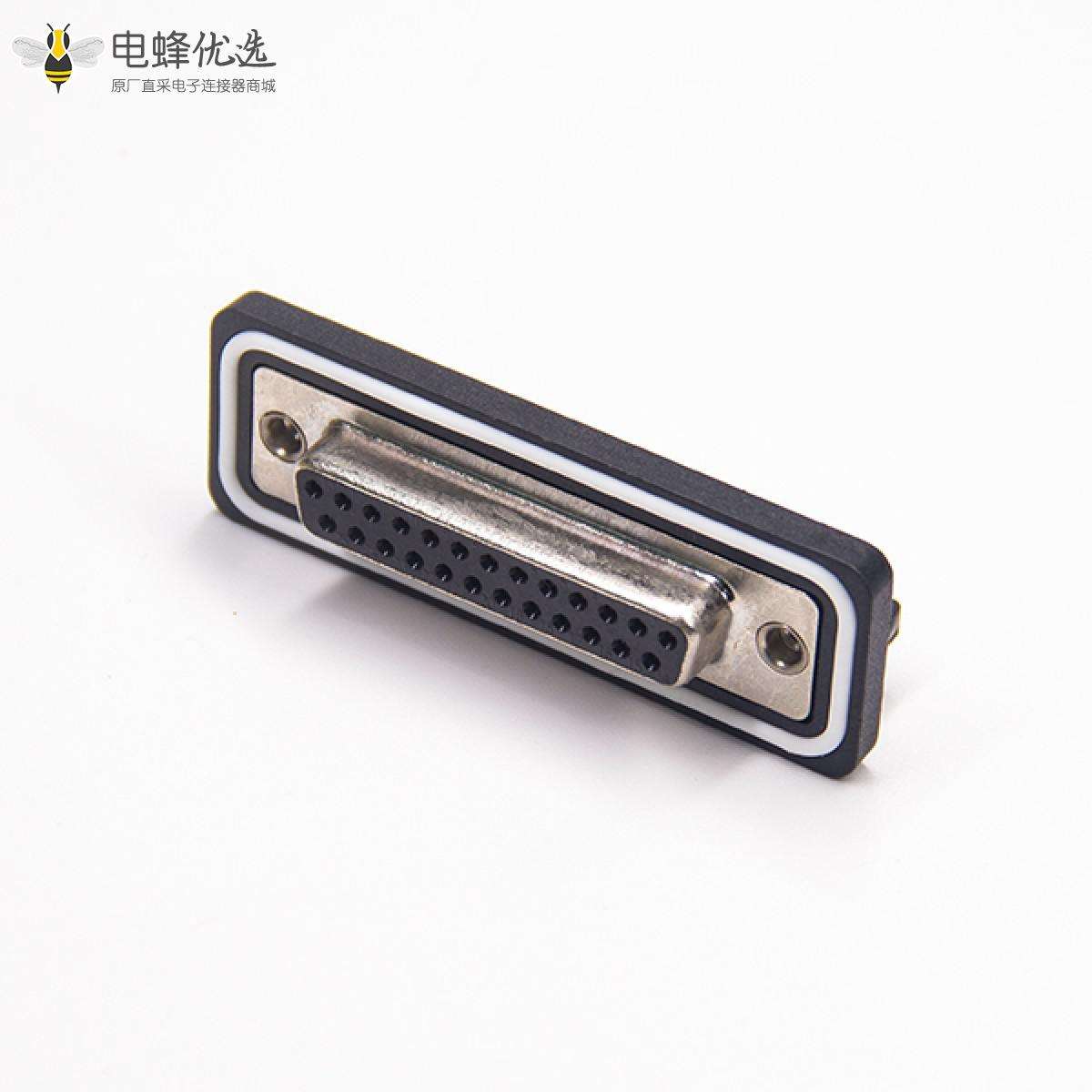 - 防水D-sub,插座,25针,2排,单端口,垂直型,车针,镀金,垂直PCB安装,后铆螺母,IP67,不带滤波;