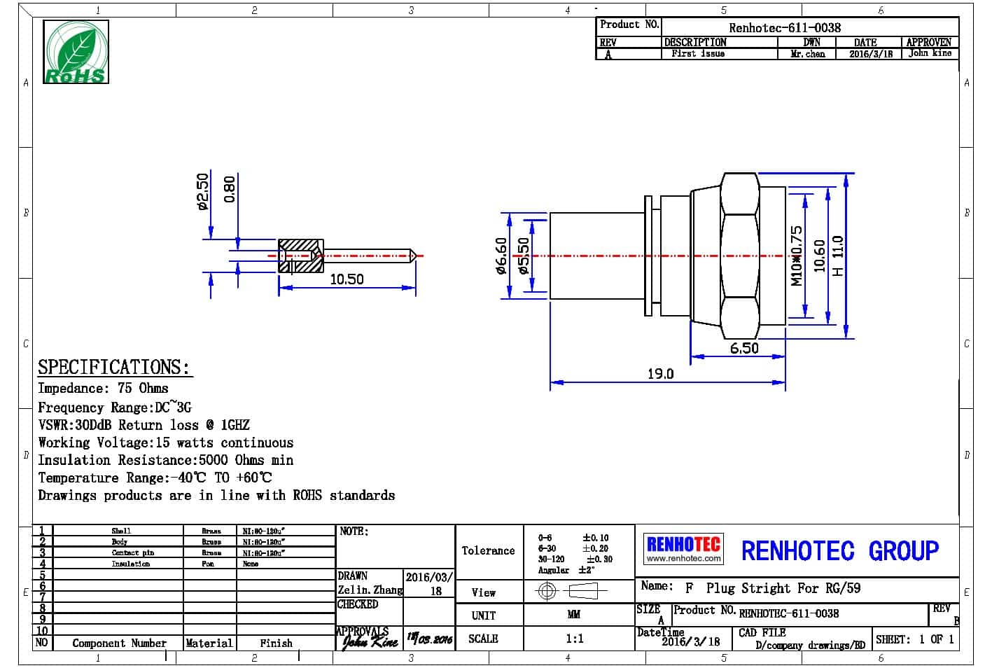 - f连接器,同轴线缆,公头,75欧,直式,RG58;