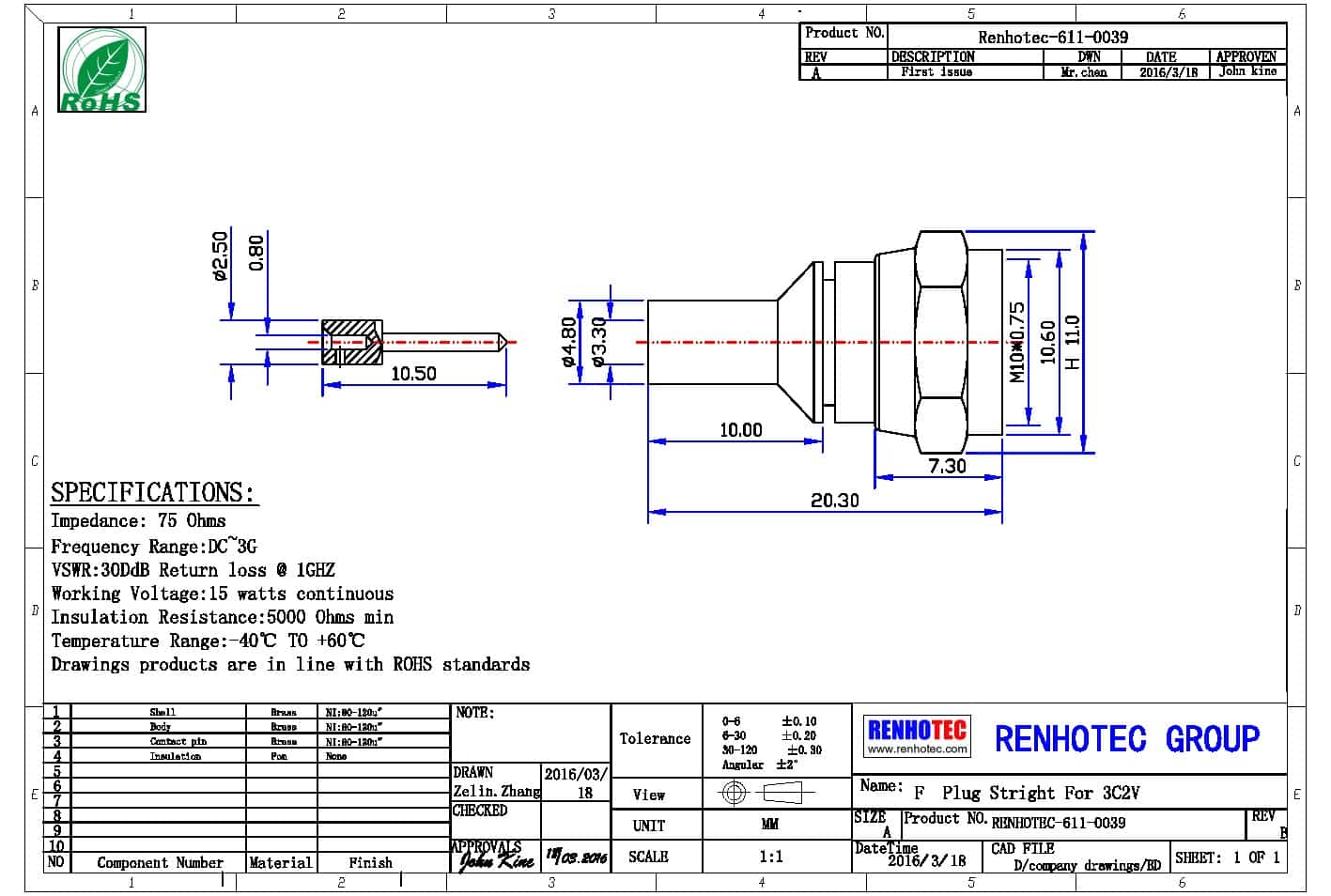 - 阻抗:75 ohm
