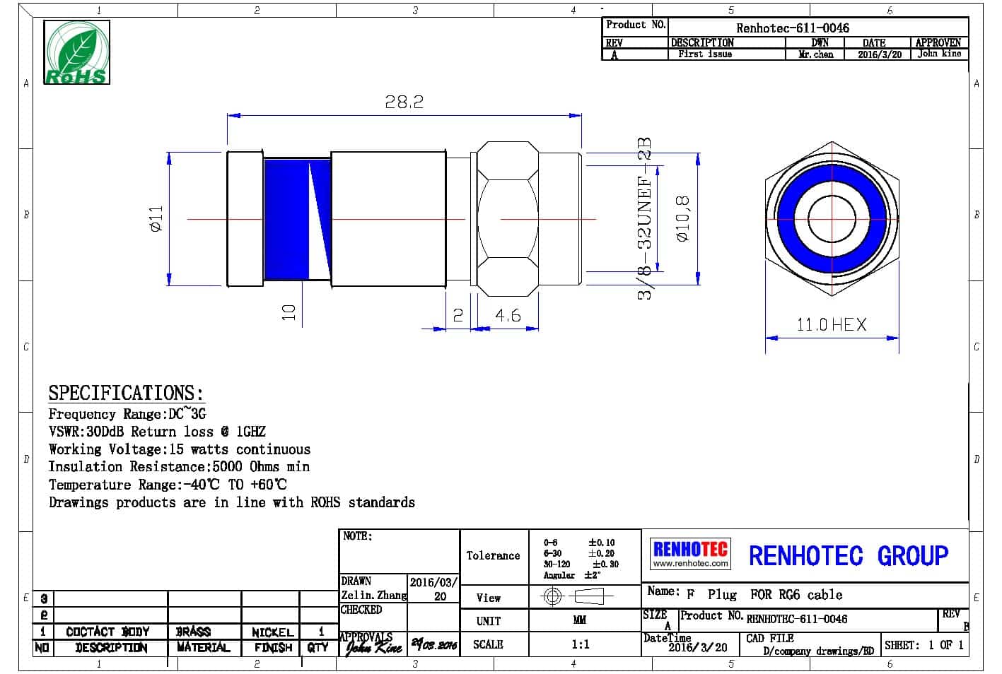 - f连接器,同轴线缆,公头,75欧,直式,挤压,RG6,RG11;