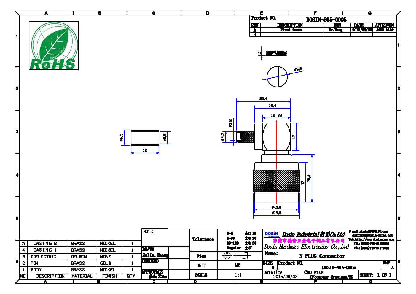 - 中心接触电阻: ≦ 1.0 mΩ (Milliohms max.)