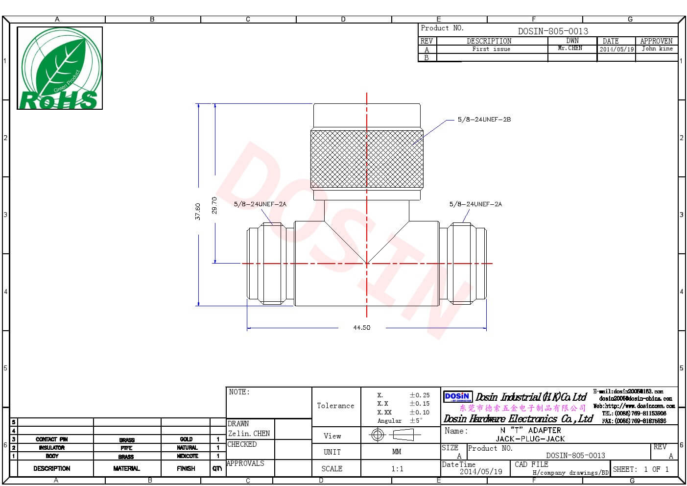 - 中心接触电阻: ≦ 1.0 mΩ (Milliohms max.)