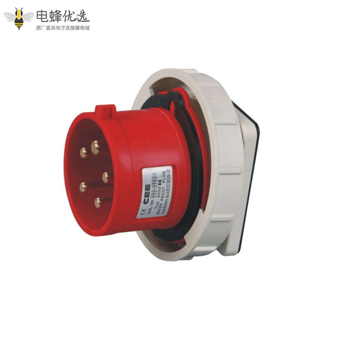 5芯,32A,380V-415V,暗装公插座,IP67,红色;