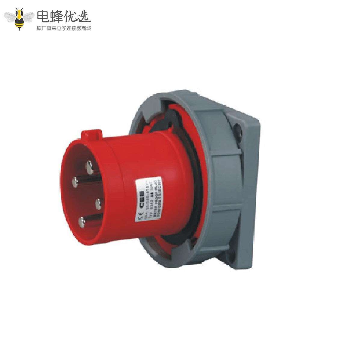 4芯,125A,380V-415V,暗装公插座,IP67,红色;