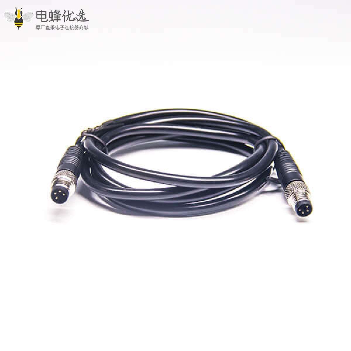 M8,A 编码,线束,4芯,公转公,直式,焊线,不带屏蔽;