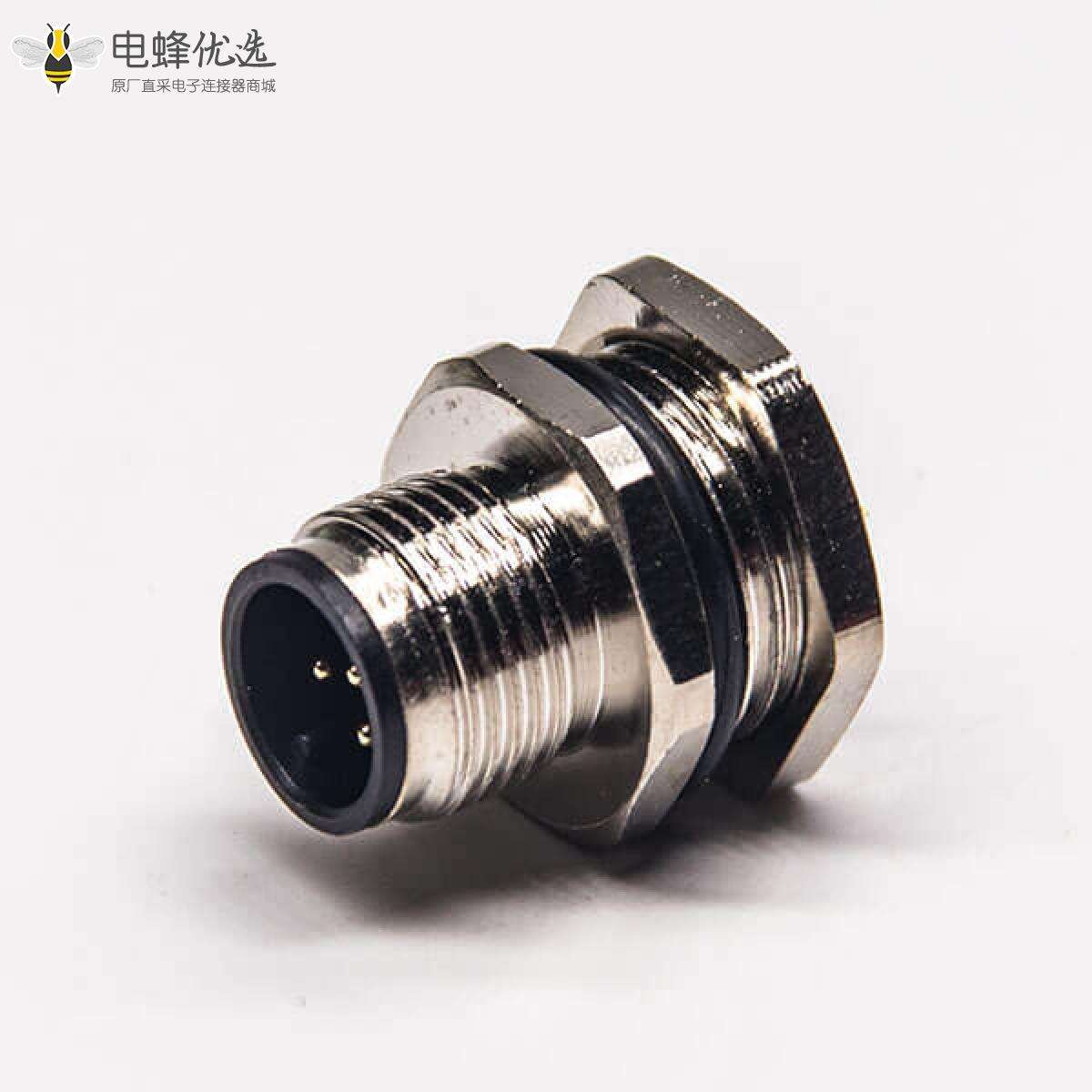 M12,A 编码,板端座子,前锁板,5芯,公,直式,焊线;