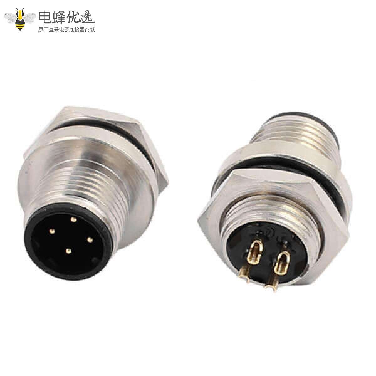 M12,D 编码,板端座子,后锁板,4芯,公头,直式,焊线;
