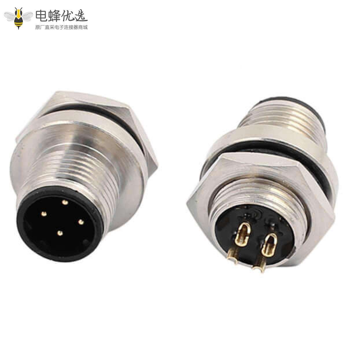 M12,D 编码,板端座子,后锁板,4芯,公头,直式,焊线;