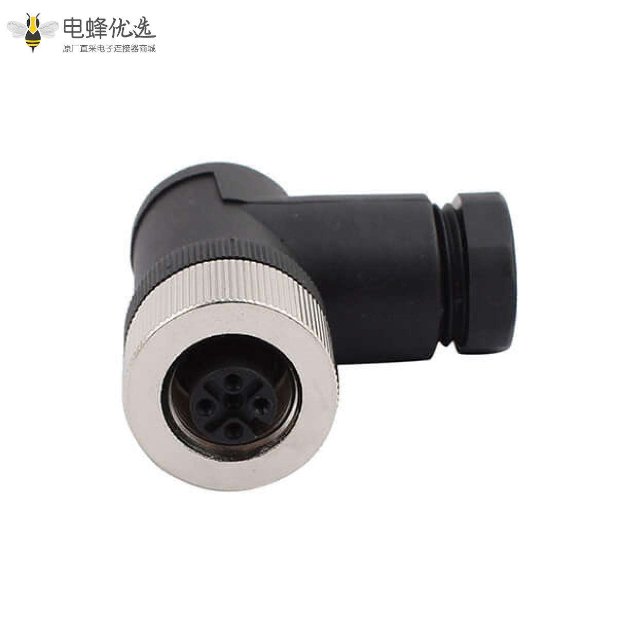 M12,A 编码,现场组装式,5芯,母头,弯式,螺丝锁线,不带屏蔽;