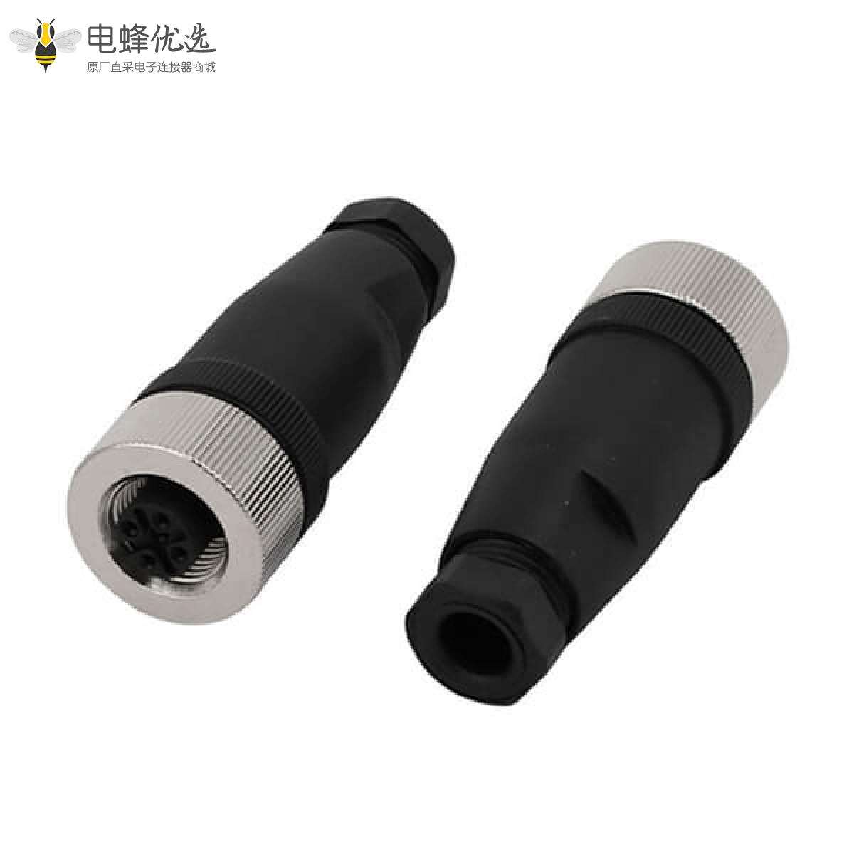 M12,A 编码,现场组装式,4芯,母头,直式,螺丝锁线,不带屏蔽;