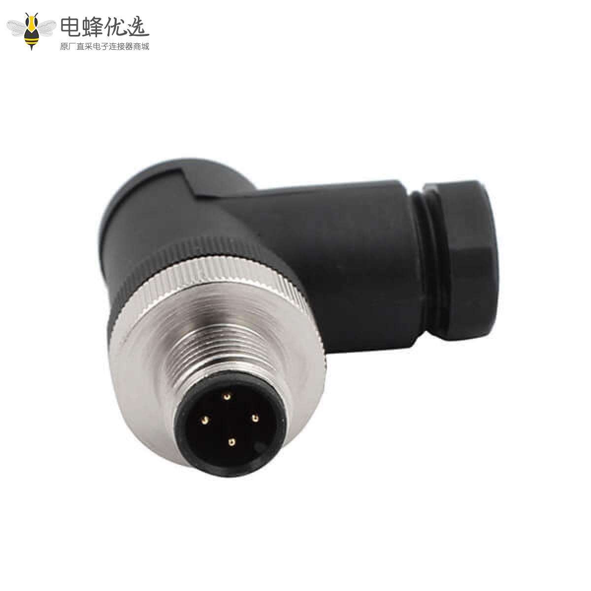 M12,A 编码,现场组装式,4芯,公头,弯式,螺丝锁线,不带屏蔽;