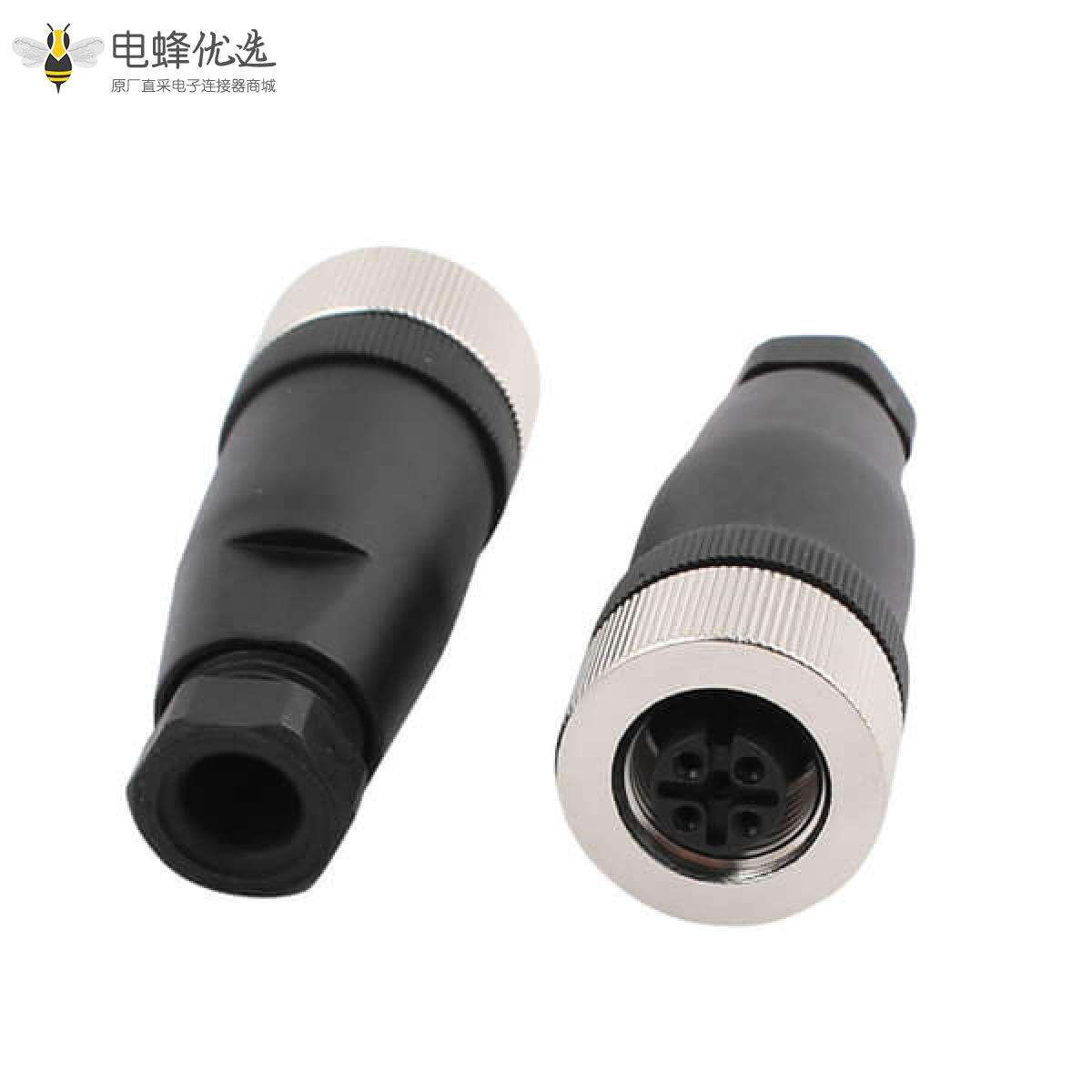 - M12,A 编码,现场组装式,5芯,母头,直式,螺丝锁线,不带屏蔽;