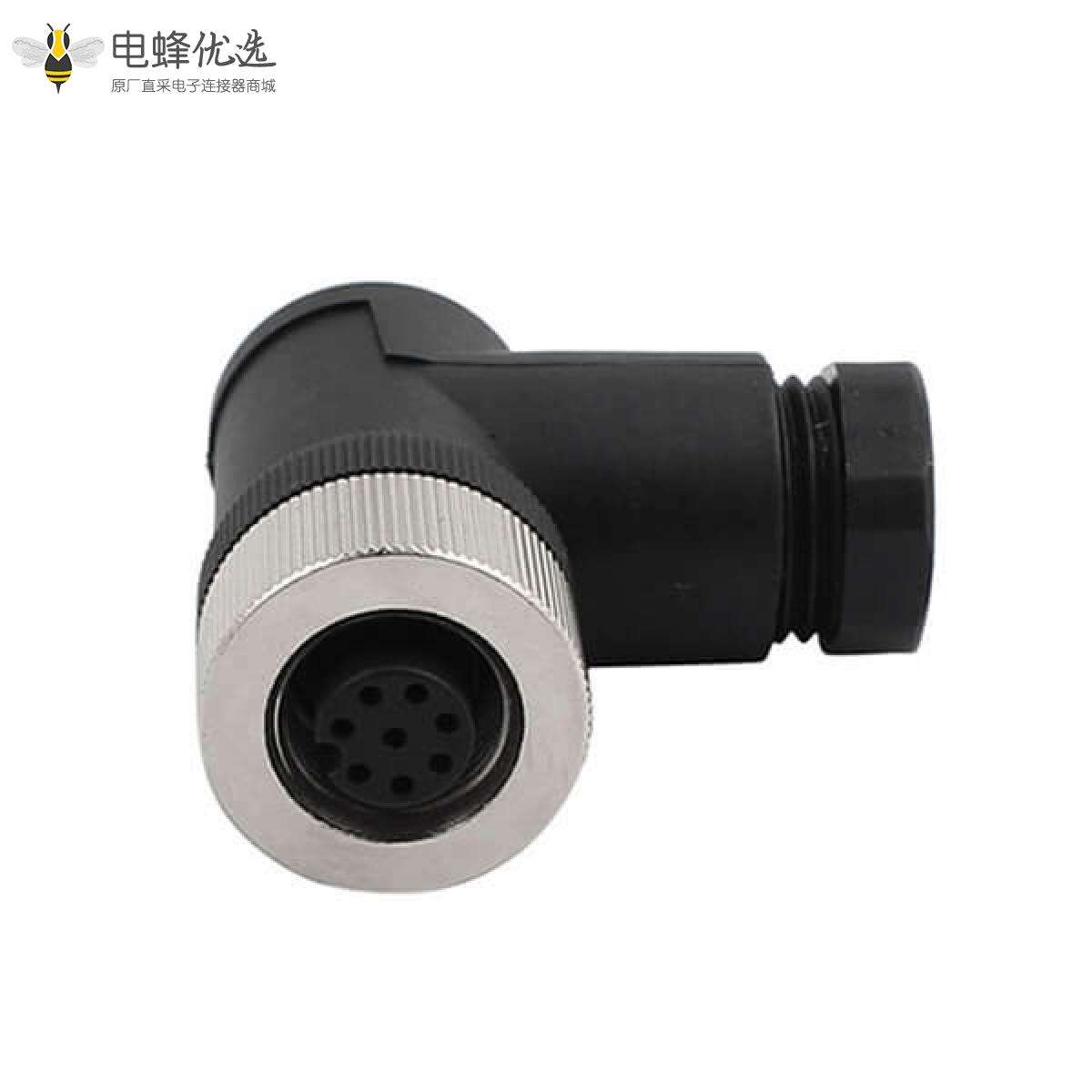 - M12,A 编码,现场组装式,8芯,母头,弯式,螺丝锁线,不带屏蔽;