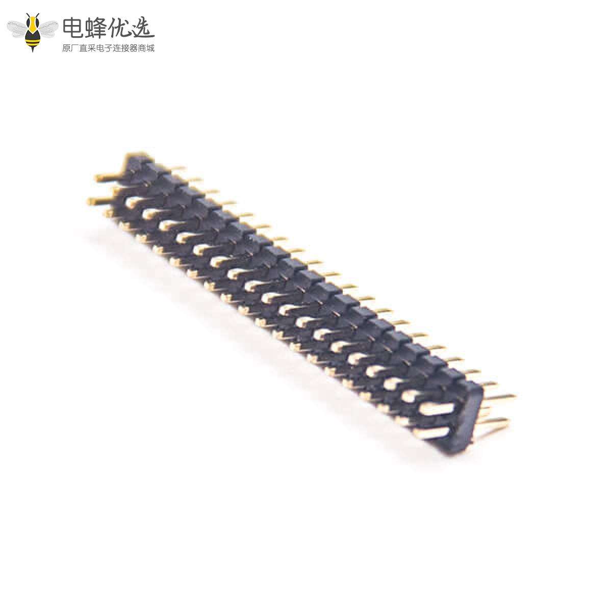 - 排针连接器,公头,直式,180度,40Pin,1.27mm,双排,单塑,插板,焊接,镀金,黑色,H1.0mm,方形;
