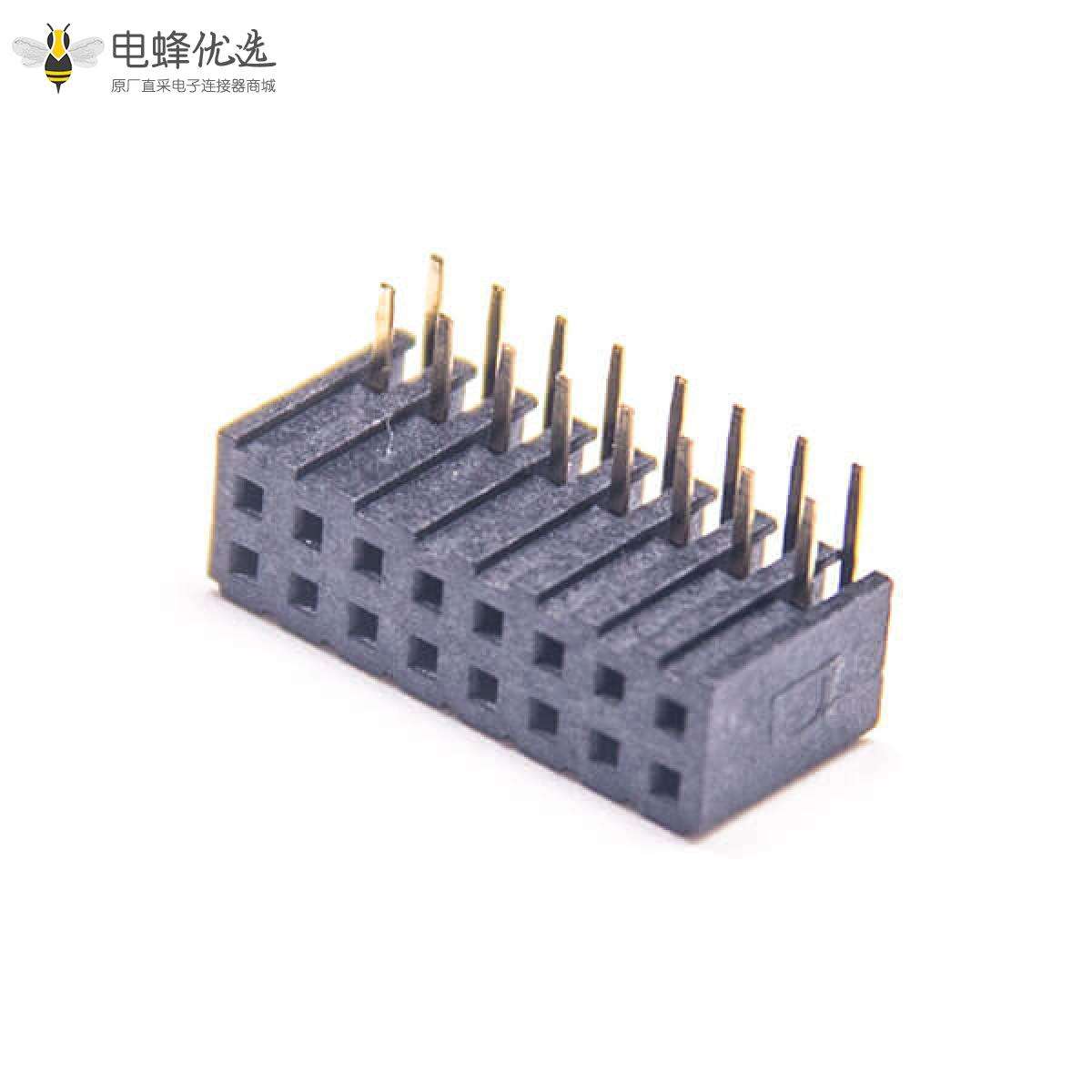 - 排母连接器,母头,弯式,90度,16Pin,2.0mm,双排,插板,焊接,镀金,黑色,H7.2mm,方针;