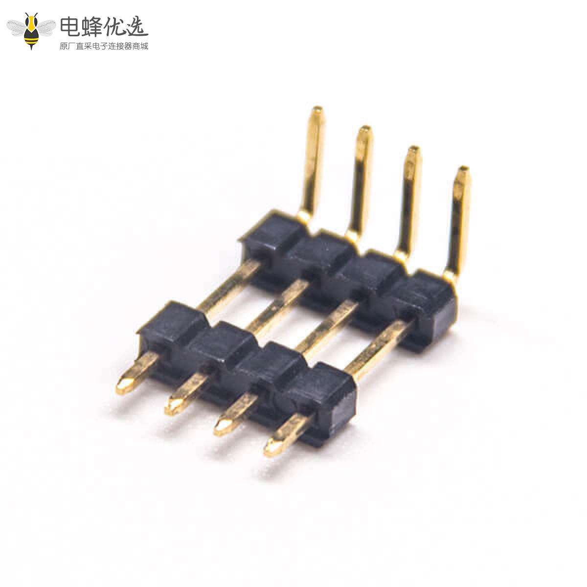 - 排针连接器,公头,弯式,90度,4Pin,2.54mm,单排,单塑,穿孔,焊接,镀金,黑色,H2.5mm,方针;
