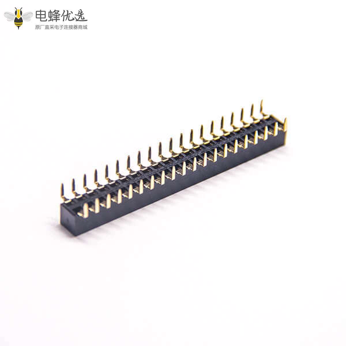 - 排母连接器,母头,弯式,90度,40Pin,2.54mm,双排,插板,焊接,镀金,黑色,H5.0mm,方形;