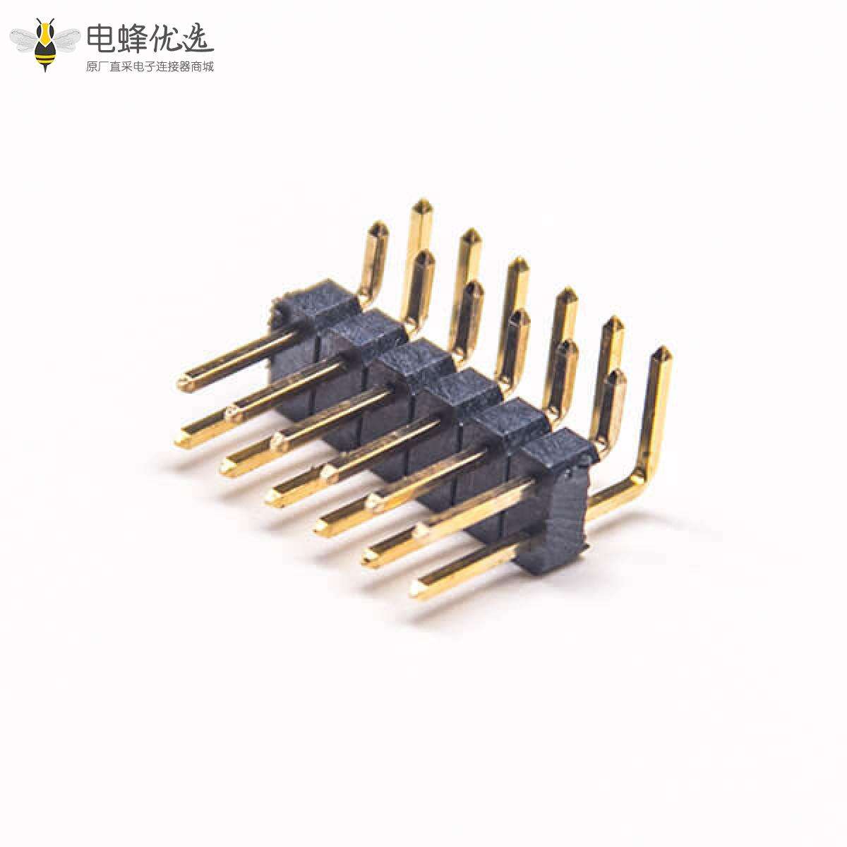 - 排针连接器,公头,弯式,90度,14Pin,2.54mm,双排,插板,焊接,镀金,黑色,H2.5mm,方形;